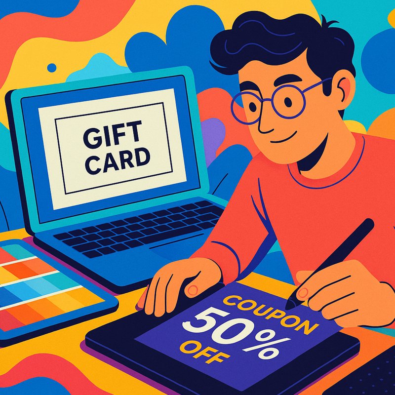 Regalos y ofertas visualmente atractivas. Creamos tarjetas de regalo y cupones que capturan la atención.